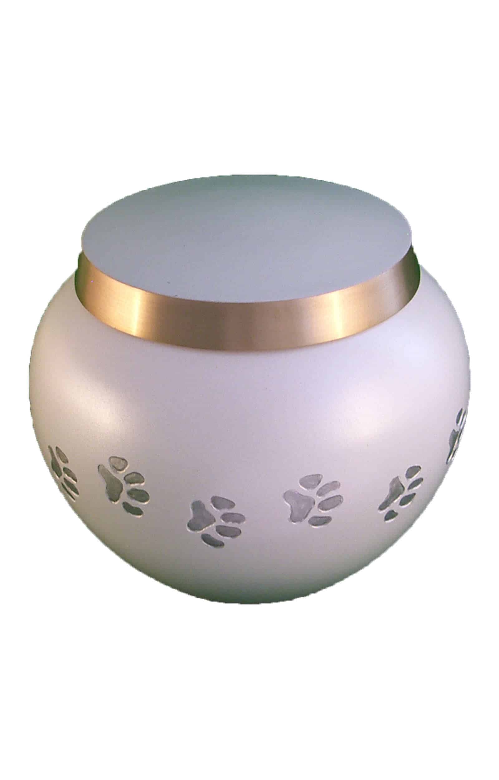 Diese weiße Tierurne mit Pfotenabdruck ist der ideale Ort für die Aufbewahrung der Asches Ihres geliebten Haustieres. Sie besitzt eine weiße Lackierung, und der Pfotenabdruck als Detail heitert Sie in schweren Zeiten auf. Eine geeignete Ruhestätte für Katzen und kleine Hunde.