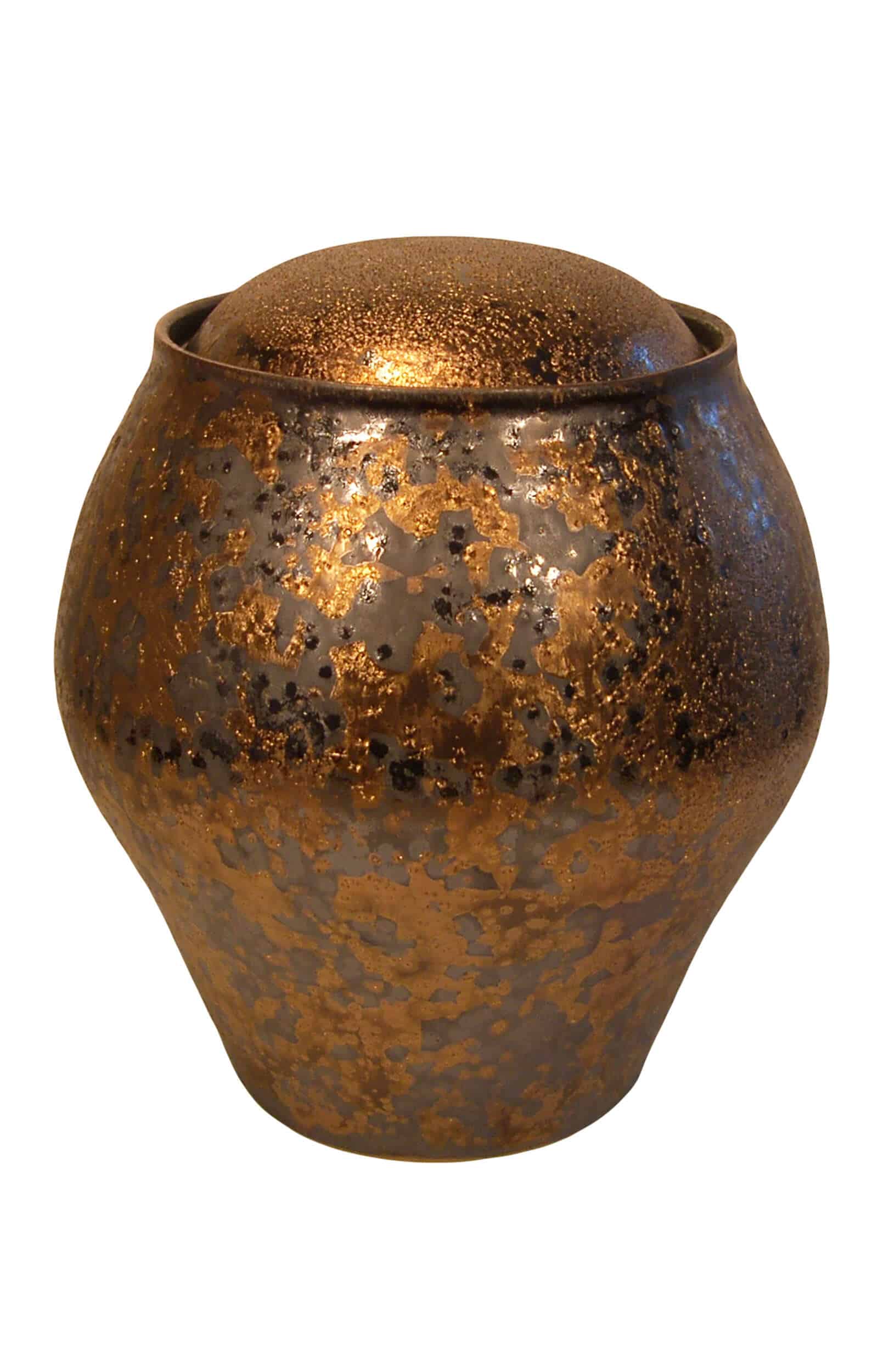 Diese elegante Keramikurne ist mit einer brillanten Bronzeoberfläche versehen. Die bronzefarbene Außenschicht sorgt für eine lange Lebensdauer und ein hochglänzendes Erscheinungsbild.