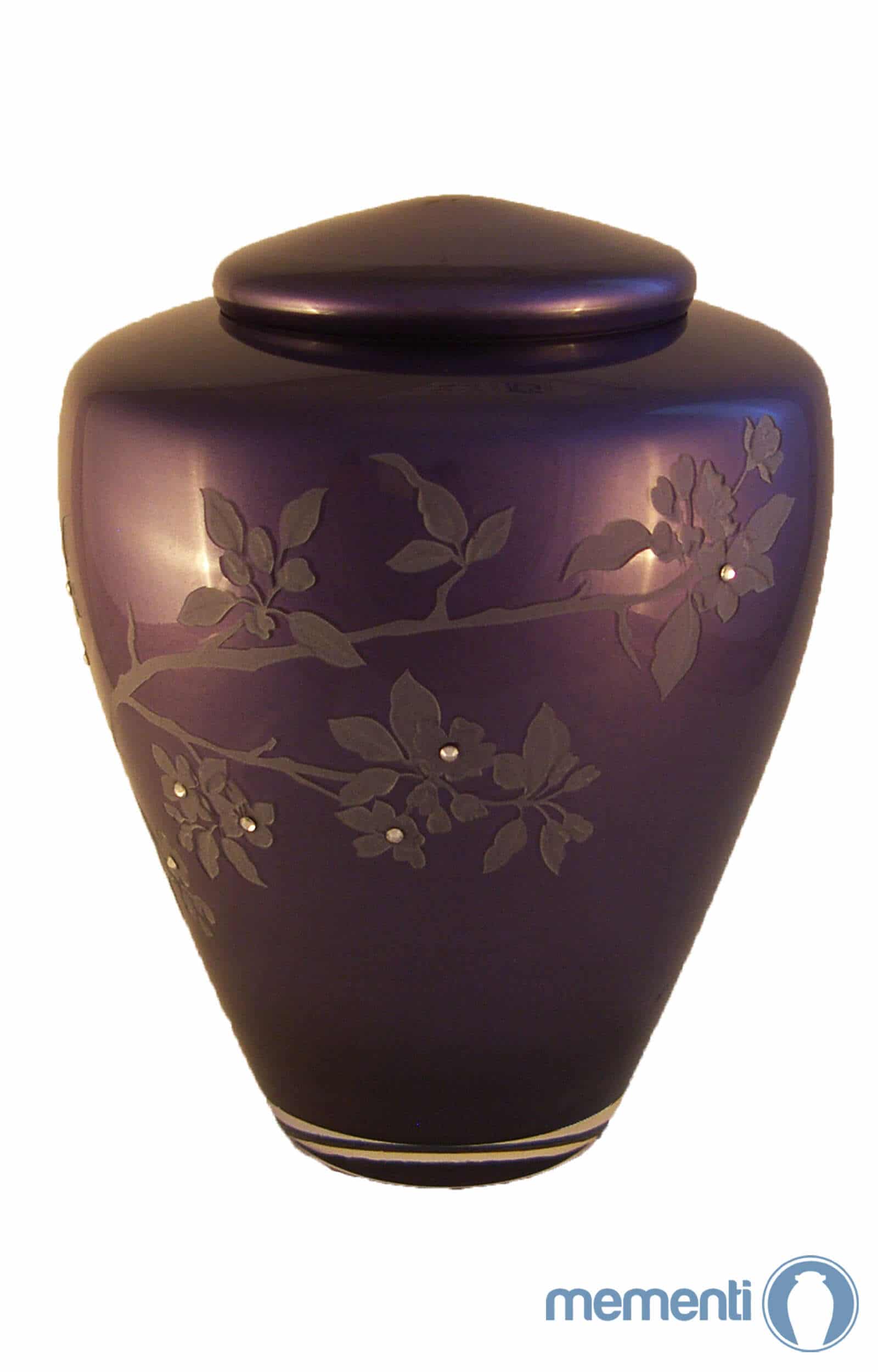 Wenn Sie nach einer eleganten und würdevollen Ruhestätte für Ihre geliebte Person suchen, ist diese Glasurne mit Blüten perfekt. Neben der violetten und sanften Ausstrahlung besitzt diese Urne ein Blumenmuster und Edelsteine für eine elegante und gehobene Note. Diese Urne ist geeignet für die Asche von Erwachsenen und bringt Ihnen mit dem Wissen Trost, dass die Asche Ihrer geliebten Person sicher bewahrt ist.